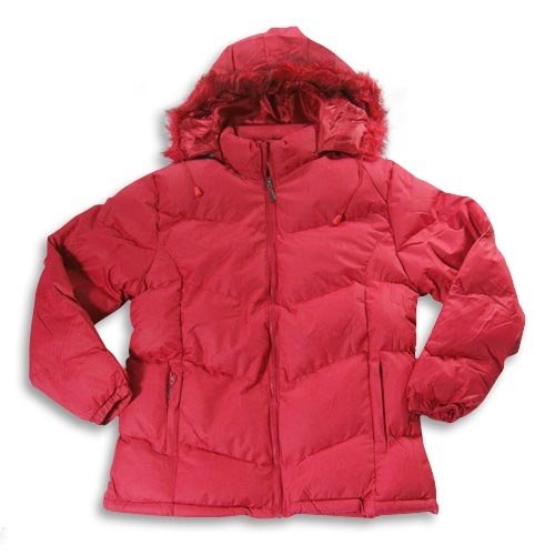 Sugar & Spice - Ladies Chevron Quilt Winter Jacket, Red, Zip Off Hood With Faux Fur Trim, Drawstring Tie In Hood Trim With Toggle, Zip Front, Front Zippered Pockets, Elastic Cuff Wrists, Fully Lined, Water Resistant, Shell 100% Polyester Filling 80% Polyester 20% Down Feather, #20287