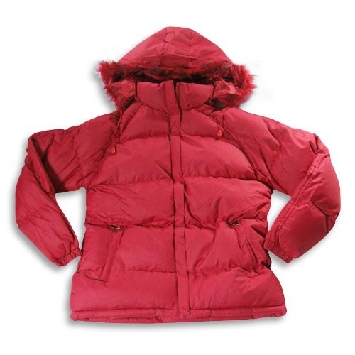 Sugar & Spice - Ladies Chevron Quilt Winter Jacket, Red, Zip Off Hood With Faux Fur Trim, Drawstring Tie In Hood Trim With Toggle, Covered Panel Zip Front, Front Zippered Pockets, Elastic Cuff Wrists, Tone On Tone Stitched Panel Down Sleeves, Fully Lined, Water Resistant, Shell 100% Polyester Filling 80% Polyester 20% Down Feather, #20292